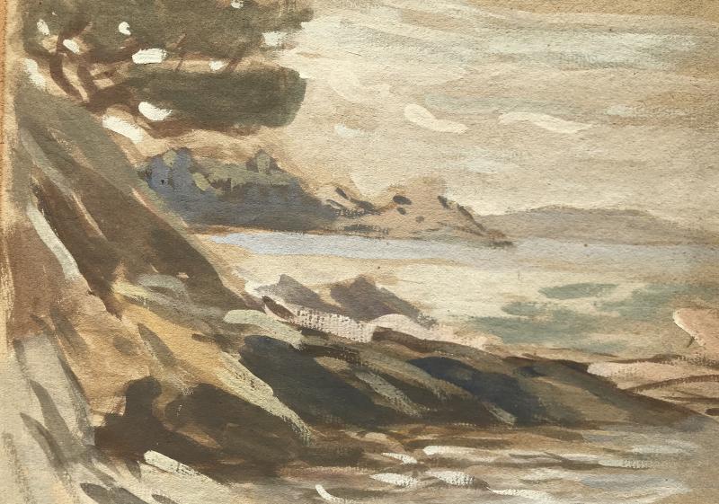 Cote rocheuse de la Bretagne. C’est une très belle peinture avec des plages de réserves comme il sait