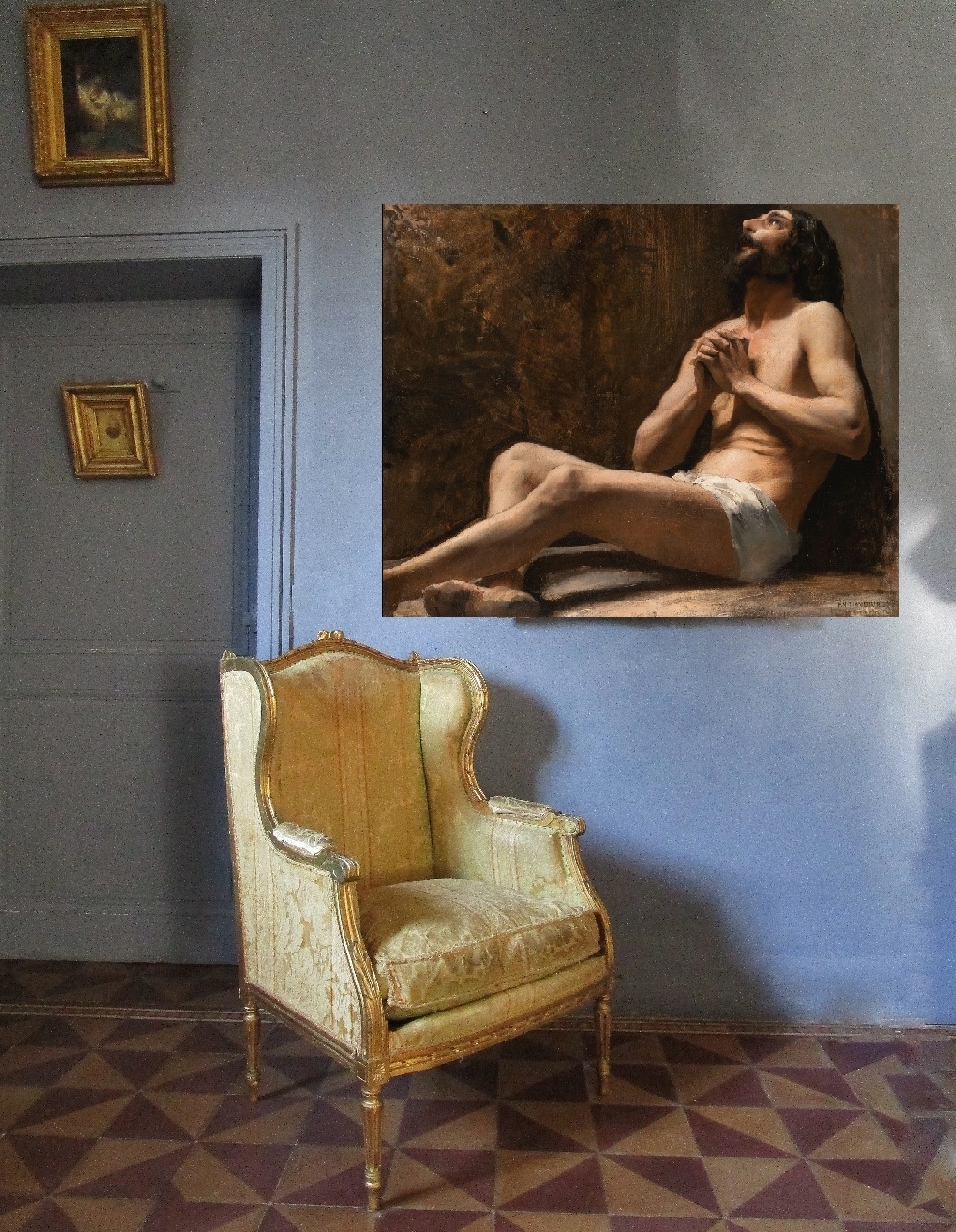 Notre peinture pourrait être une étude préparatoire pour Le Chemin du Calvaire (1842-1846), partie du cycle de peintures murales d’Hippolyte pour l’église Saint-Germain-des-Près, à Paris – qui a été exécutée en partie par Paul.