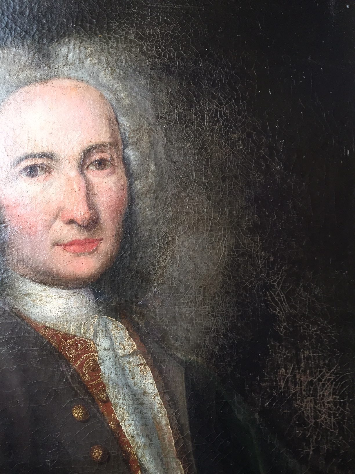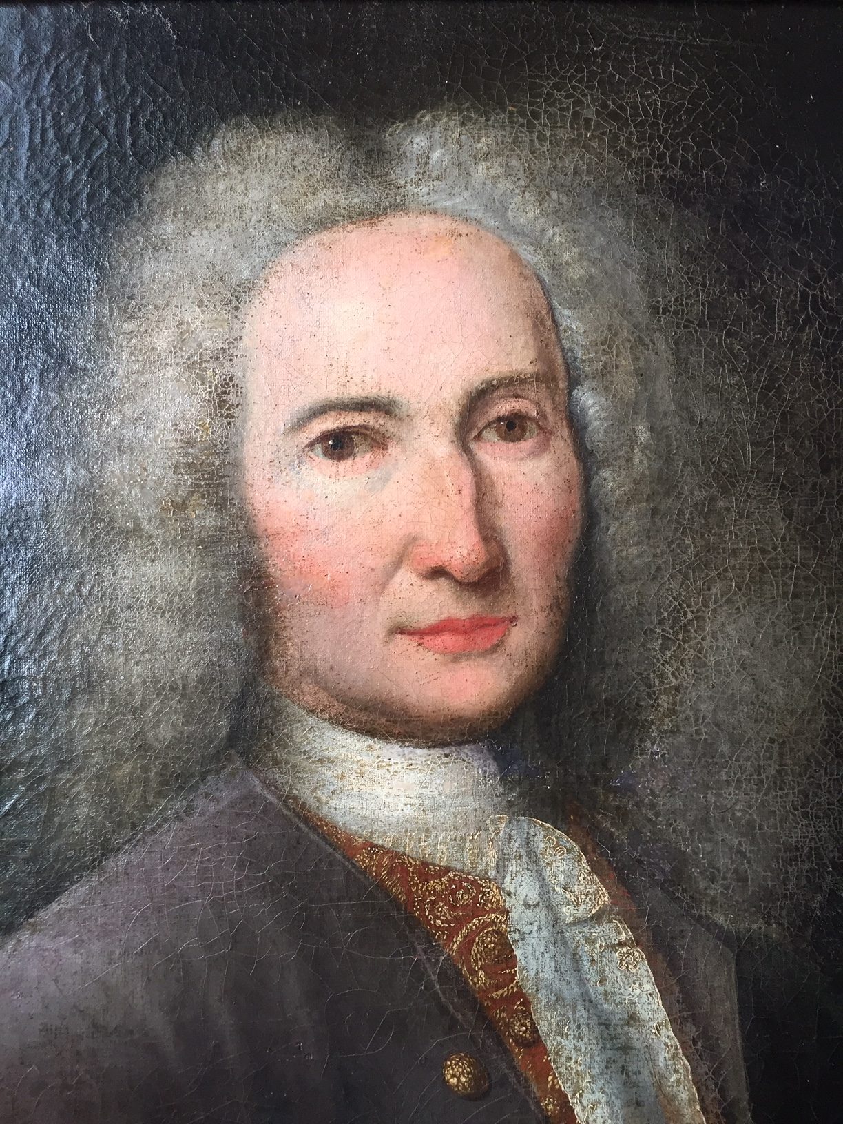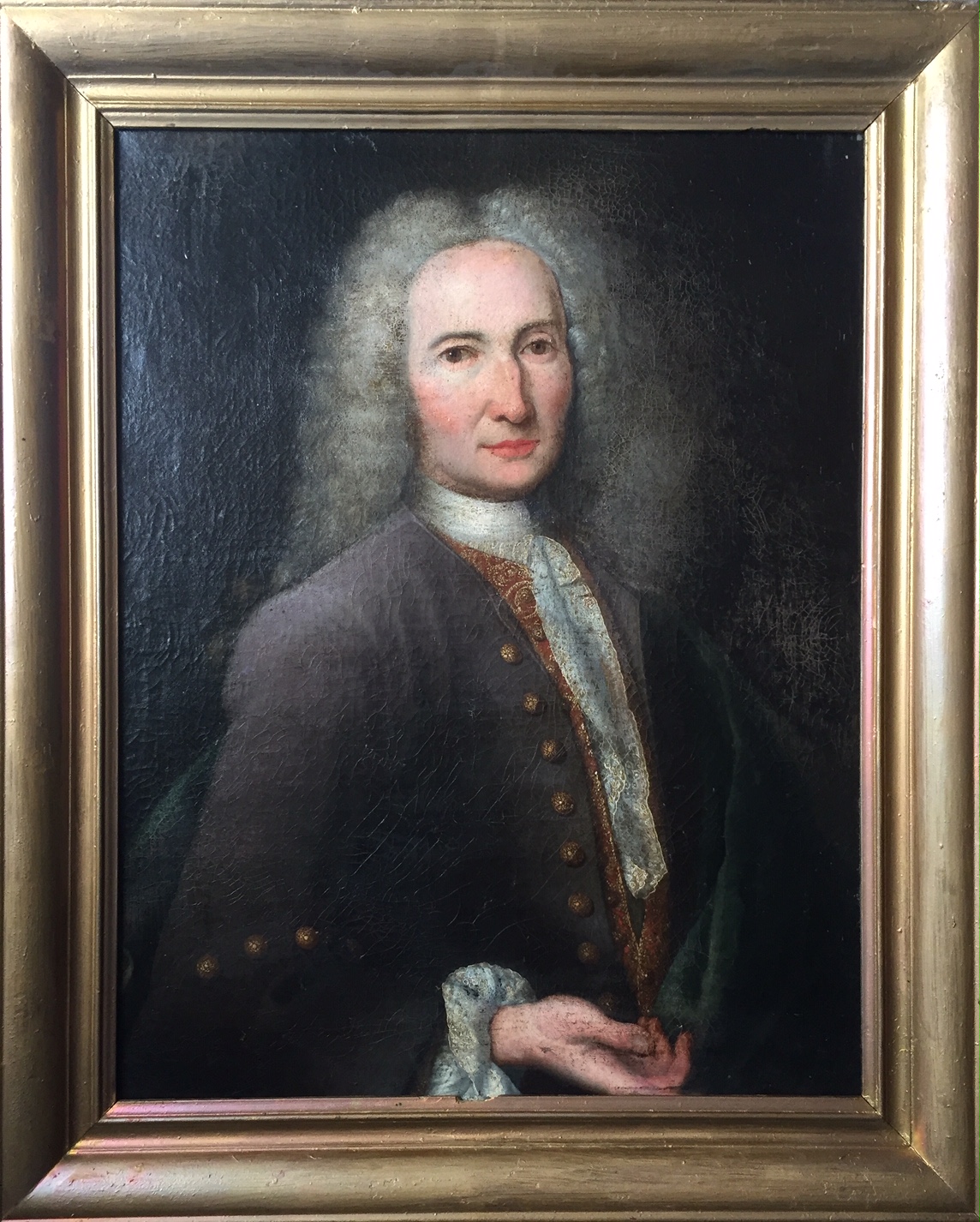 Portrait d’un aristocrate du début du XVIIIème siècle vers 1720, école française, huile sur toile retendue sur châssis récent. Restaurations, dimension hors cadre H74 cm x L55 cm, dimension avec cadre postérieur en l’état (repeint) H85,5 cm x L69 ,5 cm. Prix hors frais de livraison.