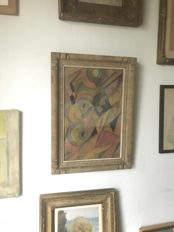 Gouache sur papier encadrée par un cadre en bois sculpté dites « Montparnasse ». Le tout est en bon état.