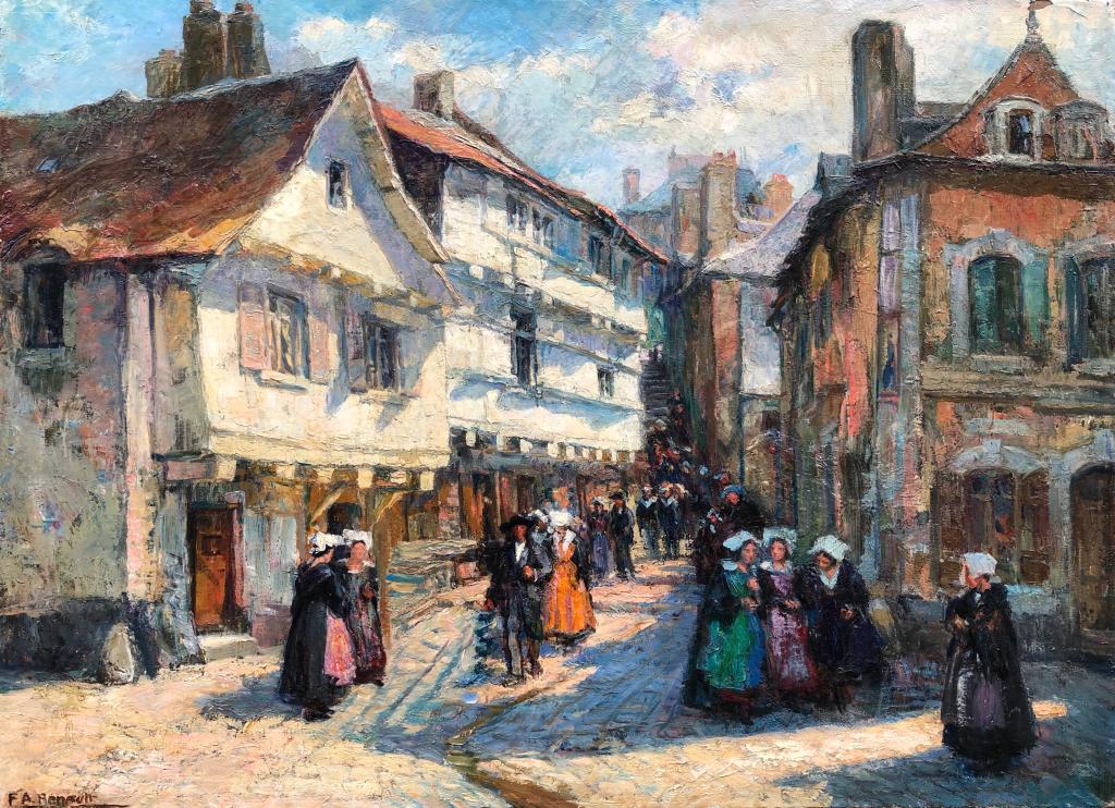 Rue animée à Saint-Goustan (Auray) par Albert Fernand Renault – Bretagne