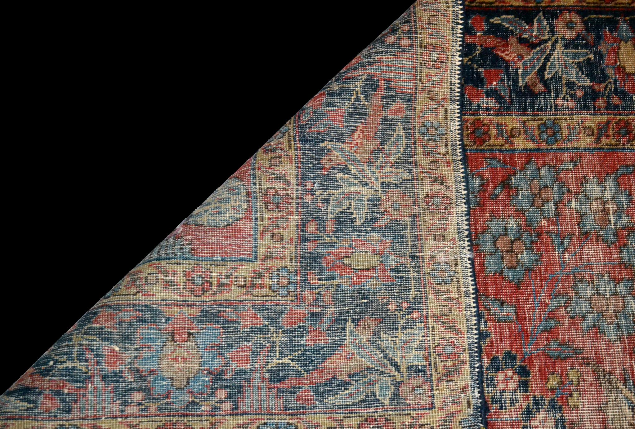 Une belle pièce ancienne comme j’aime à les dénicher, ce très beau Tabriz à décor de mihrab d’un beau rouge orangé date du XIXème siècle.La laine douce et fine qui le compose garde encore ses magnifiques couleurs.