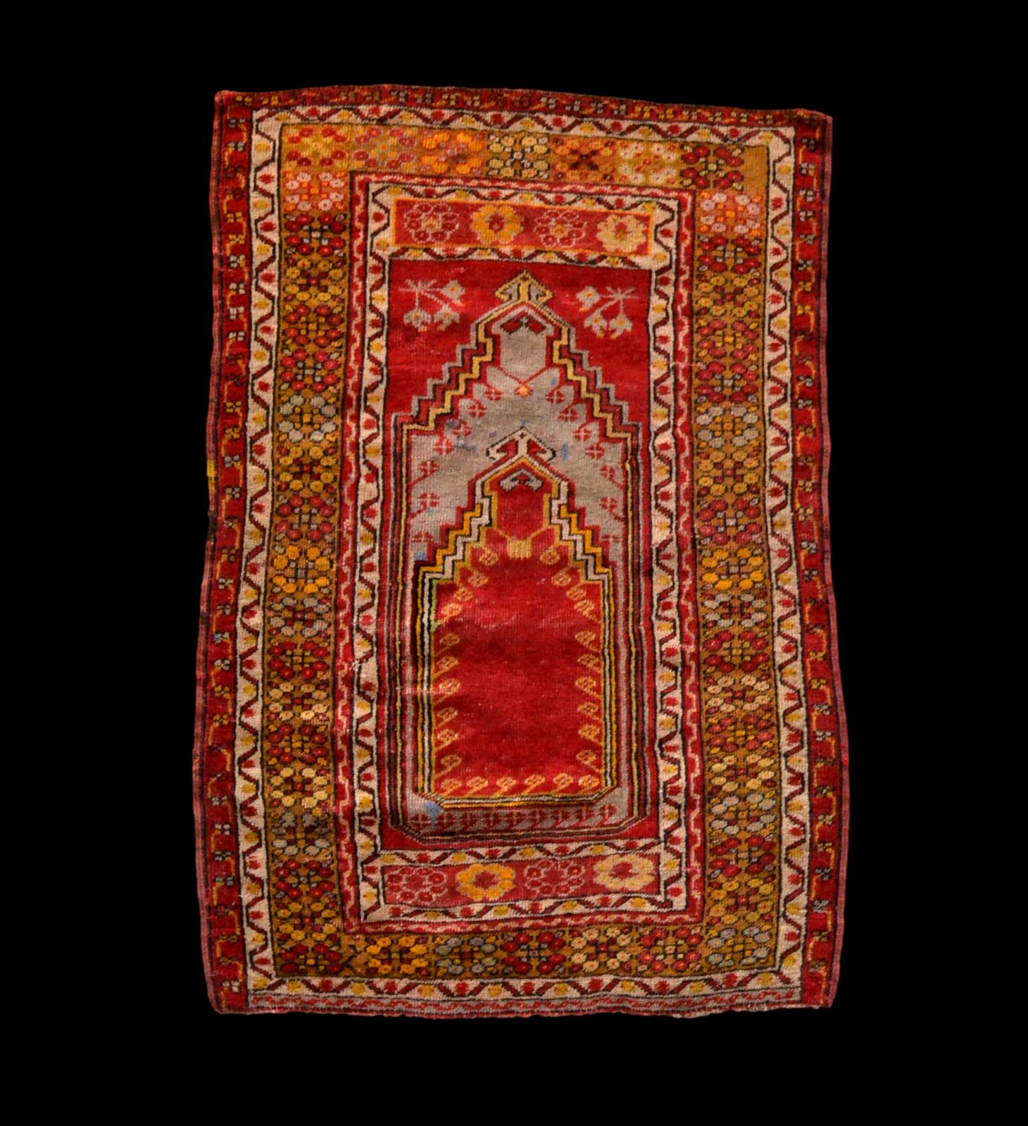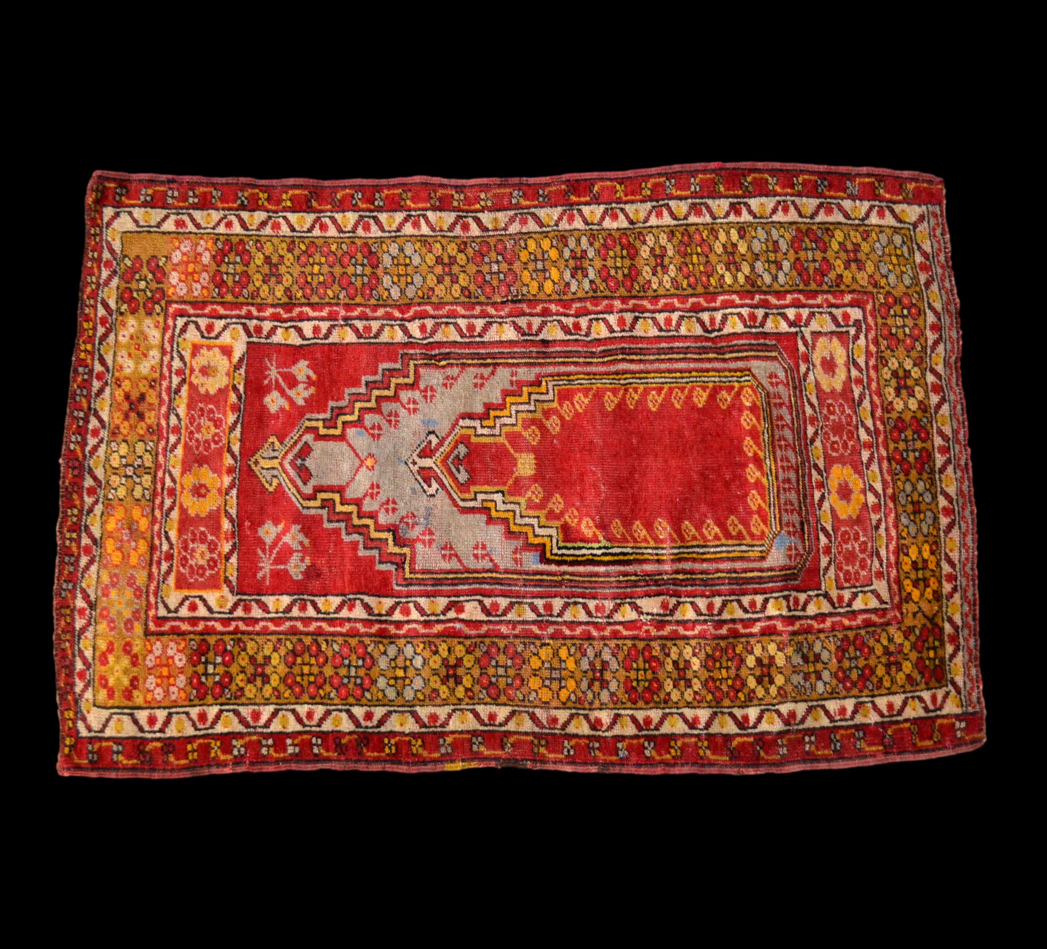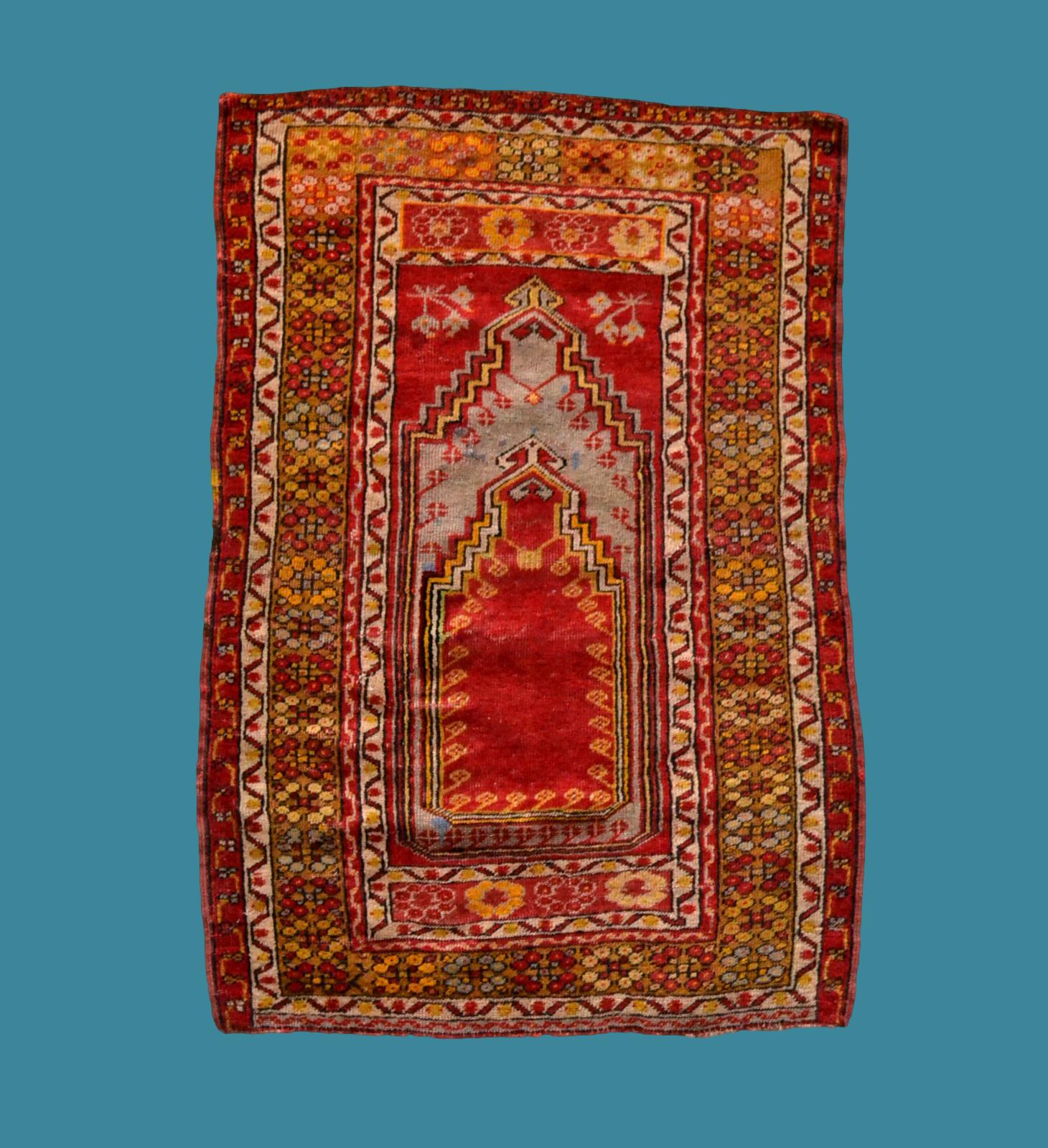 Tapis de prière ancien Kirsehir, Anatolie, Turquie, 88 cm x 126 cm, laine /laine, XIXème siècle