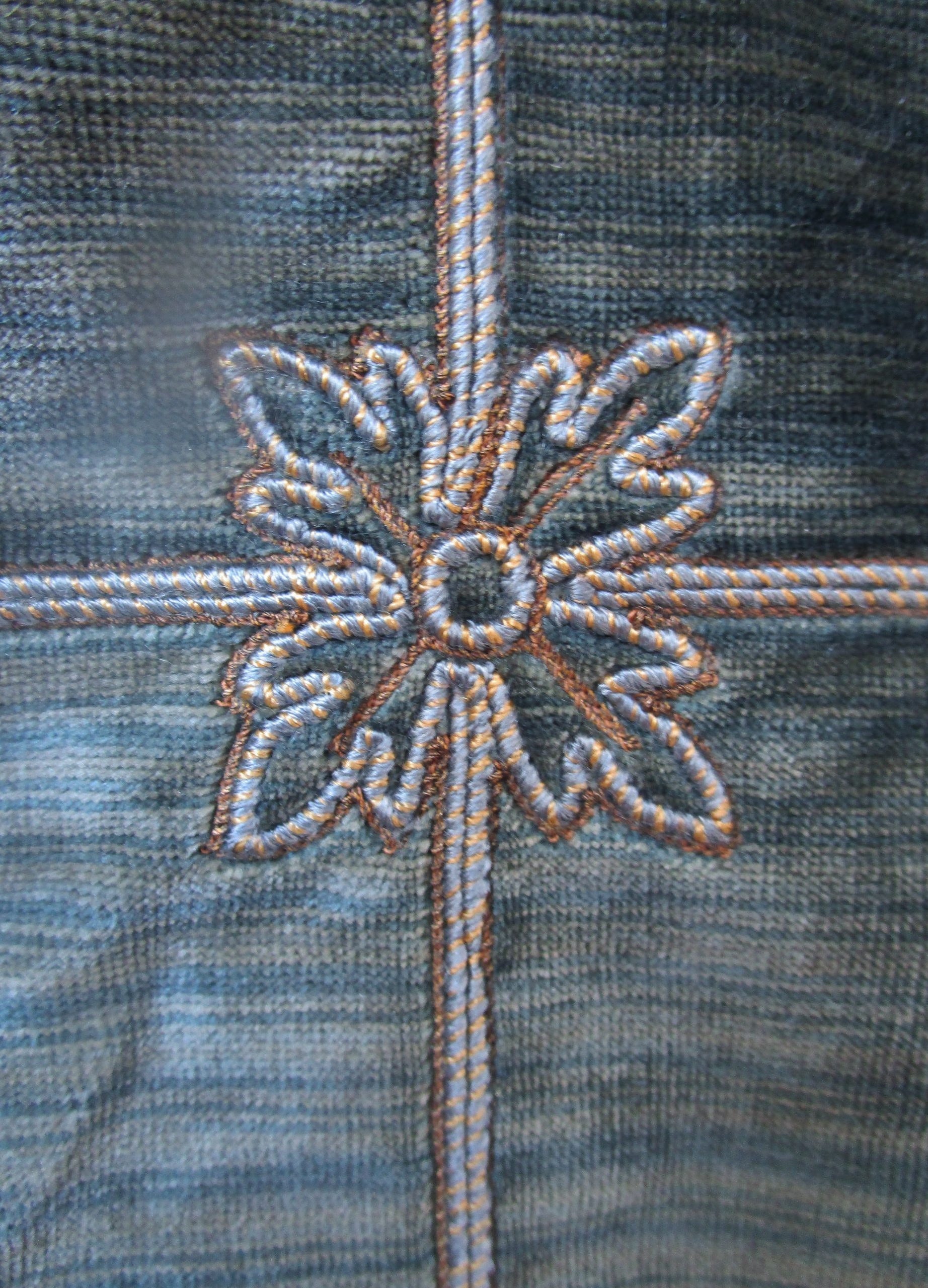 Broderie quadrillant toute la pièce avec des fleurs de trèfles bleus et or –